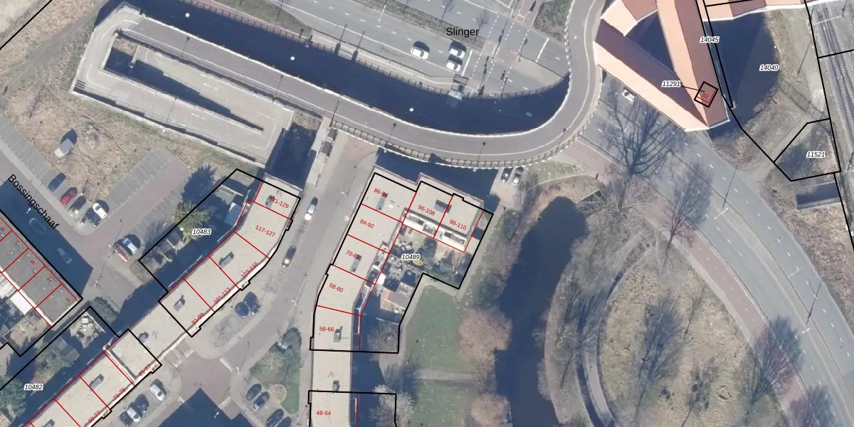 Het perceel waarop Blokschaaf 104 staat heeft een oppervlakte van 1013 m². Dit is een zeer groot perceel. De perceeloppervlakte wordt geregistreerd door het Kadaster. Gedetailleerde informatie over de maten van dit perceel kunt u vinden in het rapport Kadastrale kaart met maatvoering van Blokschaaf 104.