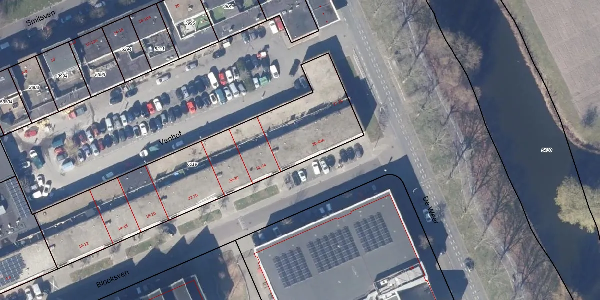 Het perceel waarop Blooksven 38 staat heeft een oppervlakte van 2332 m². Dit is een zeer groot perceel. De perceeloppervlakte wordt geregistreerd door het Kadaster. Gedetailleerde informatie over de maten van dit perceel kunt u vinden in het rapport Kadastrale kaart met maatvoering van Blooksven 38.