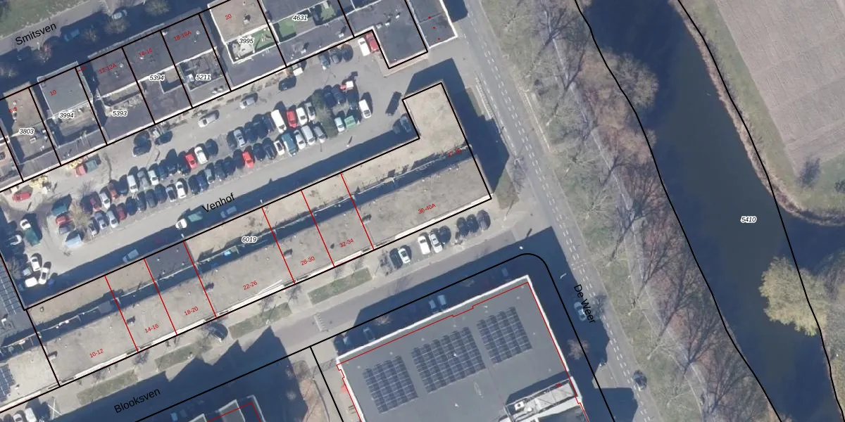 Het perceel waarop Blooksven 40 staat heeft een oppervlakte van 2332 m². Dit is een zeer groot perceel. De perceeloppervlakte wordt geregistreerd door het Kadaster. Gedetailleerde informatie over de maten van dit perceel kunt u vinden in het rapport Kadastrale kaart met maatvoering van Blooksven 40.