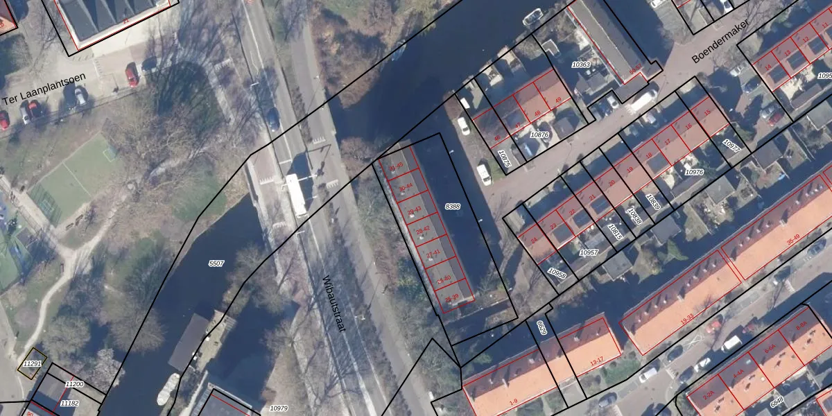 Het adres is gelegen op perceel 8388 in de sectie I en de kadastrale gemeente Zaandam. De kadastrale aanduiding is aldus ZDM01-I-8388. Het perceel is kleiner dan gemiddeld in Zaandam. Het perceel is 848 m² groot, terwijl het gemiddelde ligt op 893,91 m². Het grootste perceel in de kadastrale gemeente is 46,7 ha. Het kleinste perceel heeft een oppervlakte van 0 m². Op het perceel zijn 21 adressen aanwezig. De huidige grenzen van het perceel zijn digitaal in de Basisregistratie Kadaster (BRK) geregistreerd op 14-11-2001.