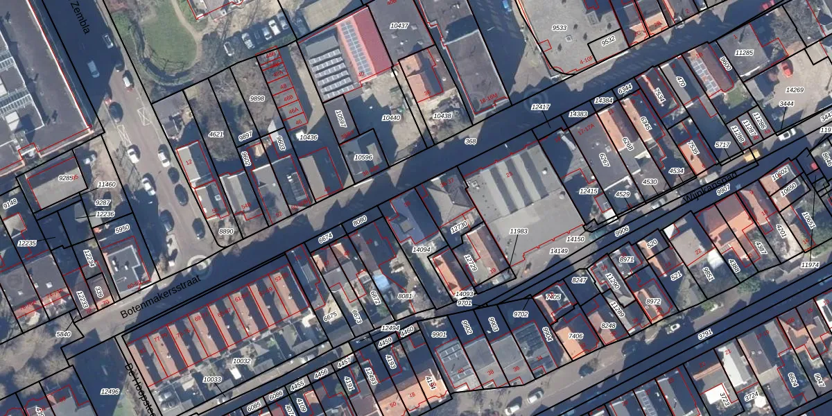 Het perceel waarop Botenmakersstraat 39 staat heeft een oppervlakte van 214 m². Dit is een middelgroot perceel. De perceeloppervlakte wordt geregistreerd door het Kadaster. Gedetailleerde informatie over de maten van dit perceel kunt u vinden in het rapport Kadastrale kaart met maatvoering van Botenmakersstraat 39.