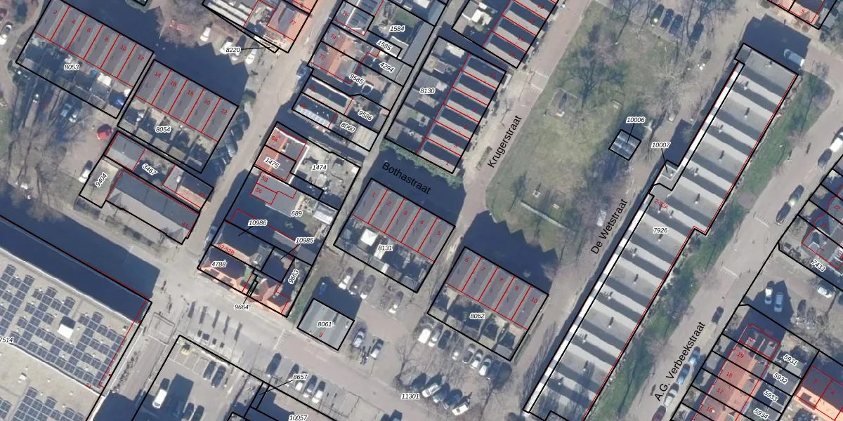 Het perceel waarop Bothastraat 4 staat heeft een oppervlakte van 416 m². Dit is een groot perceel. De perceeloppervlakte wordt geregistreerd door het Kadaster. Gedetailleerde informatie over de maten van dit perceel kunt u vinden in het rapport Kadastrale kaart met maatvoering van Bothastraat 4.