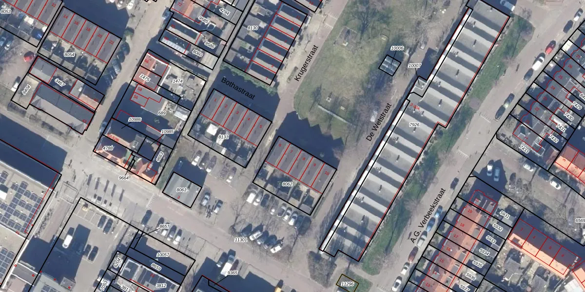 Het perceel waarop Bothastraat 7 staat heeft een oppervlakte van 416 m². Dit is een groot perceel. De perceeloppervlakte wordt geregistreerd door het Kadaster. Gedetailleerde informatie over de maten van dit perceel kunt u vinden in het rapport Kadastrale kaart met maatvoering van Bothastraat 7.