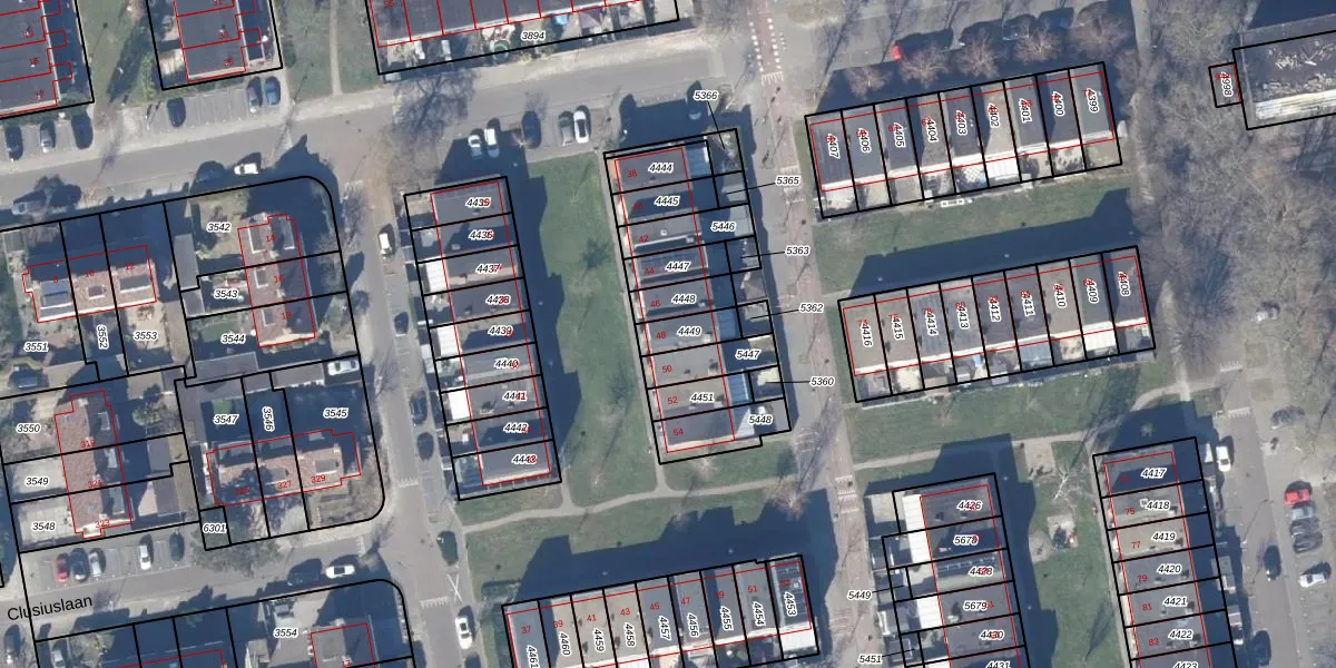 Het perceel waarop Clusiusstraat 48 staat heeft een oppervlakte van 76 m². Dit is een klein perceel. De perceeloppervlakte wordt geregistreerd door het Kadaster. Gedetailleerde informatie over de maten van dit perceel kunt u vinden in het rapport Kadastrale kaart met maatvoering van Clusiusstraat 48.