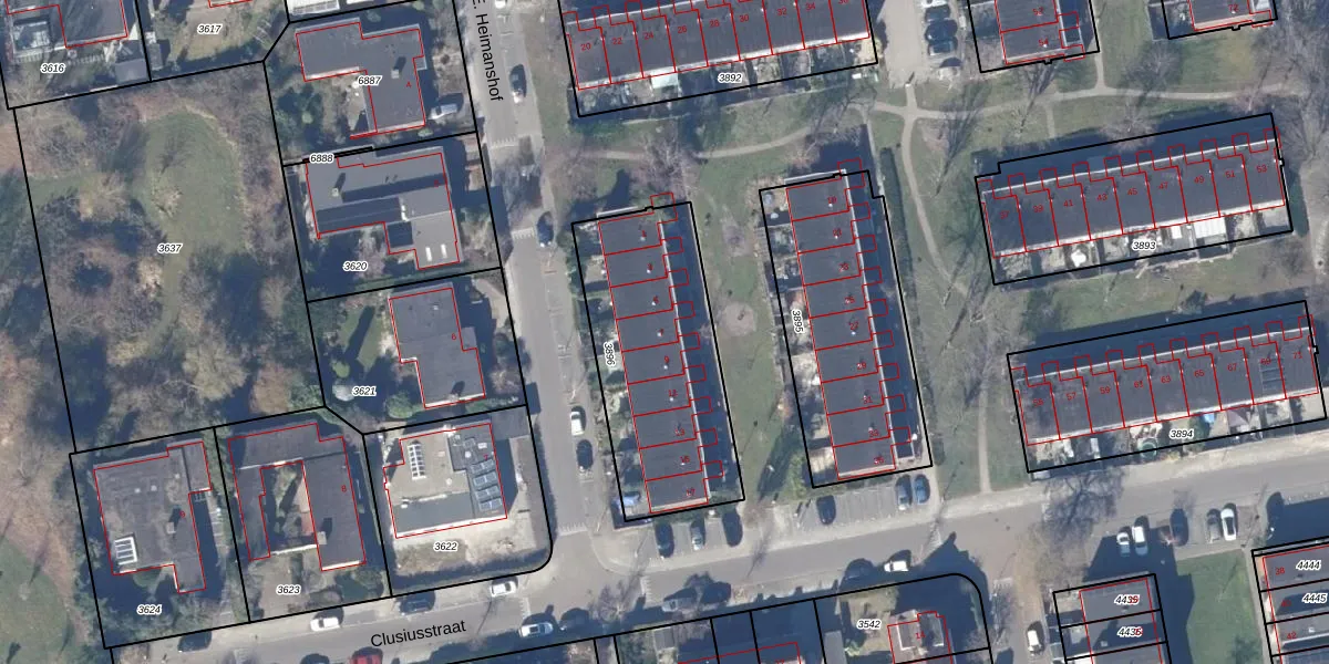 Het perceel waarop Clusiusstraat 7 staat heeft een oppervlakte van 833 m². Dit is een groot perceel. De perceeloppervlakte wordt geregistreerd door het Kadaster. Gedetailleerde informatie over de maten van dit perceel kunt u vinden in het rapport Kadastrale kaart met maatvoering van Clusiusstraat 7.