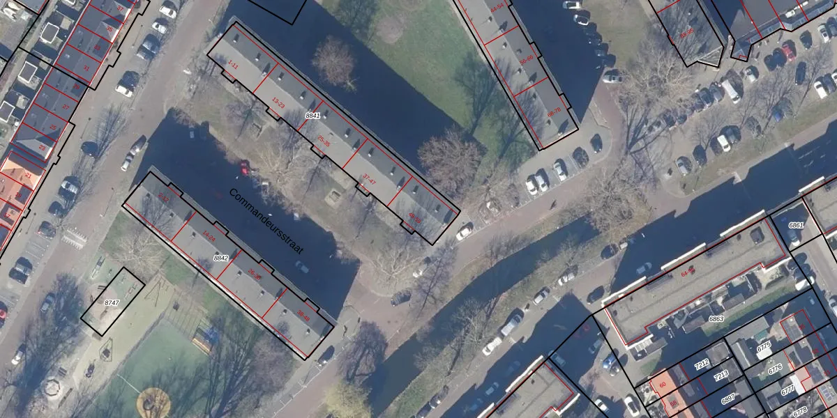 Het perceel waarop Commandeursstraat 51 staat heeft een oppervlakte van 770 m². Dit is een groot perceel. De perceeloppervlakte wordt geregistreerd door het Kadaster. Gedetailleerde informatie over de maten van dit perceel kunt u vinden in het rapport Kadastrale kaart met maatvoering van Commandeursstraat 51.