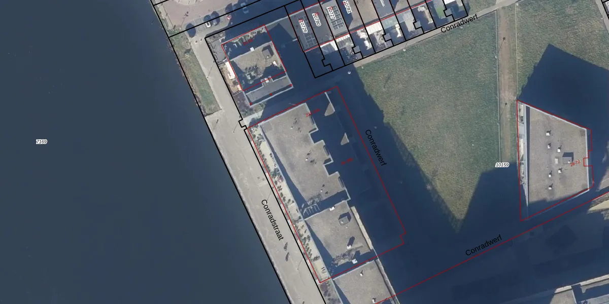 Het perceel waarop Conradwerf 63 staat heeft een oppervlakte van 1,7 ha. Dit is een zeer groot perceel. De perceeloppervlakte wordt geregistreerd door het Kadaster. Gedetailleerde informatie over de maten van dit perceel kunt u vinden in het rapport Kadastrale kaart met maatvoering van Conradwerf 63.