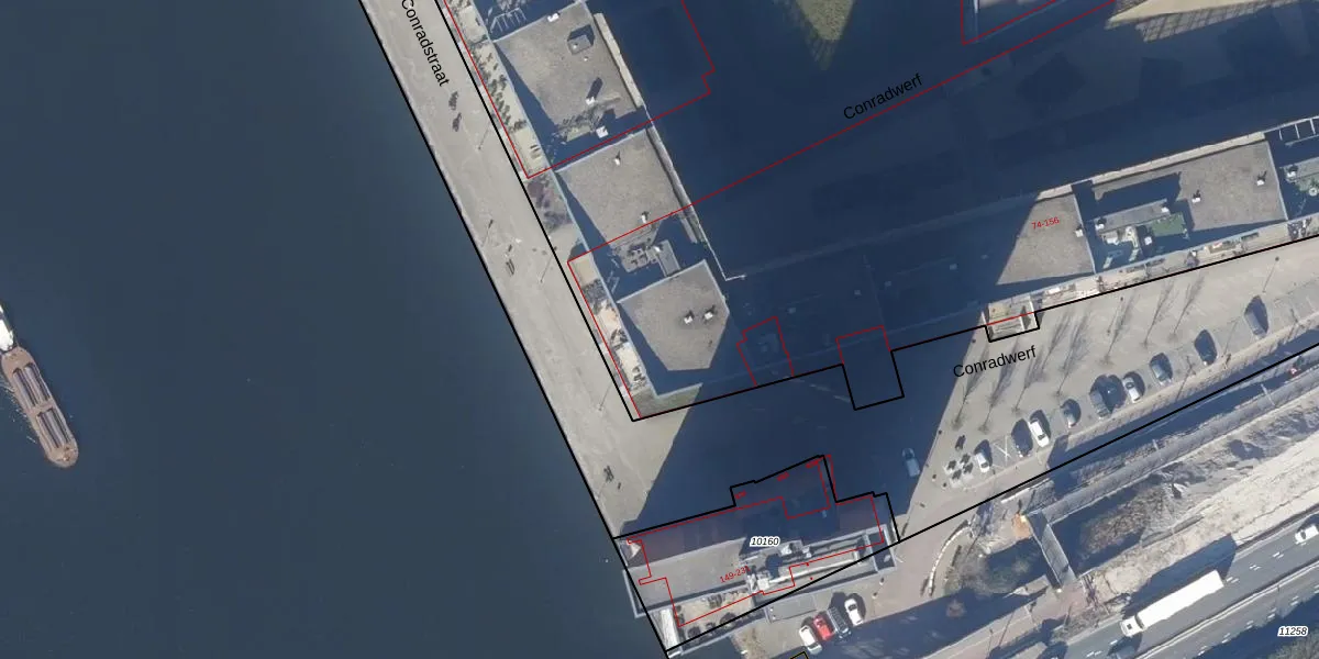 Het perceel waarop Conradwerf 79 staat heeft een oppervlakte van 1,7 ha. Dit is een zeer groot perceel. De perceeloppervlakte wordt geregistreerd door het Kadaster. Gedetailleerde informatie over de maten van dit perceel kunt u vinden in het rapport Kadastrale kaart met maatvoering van Conradwerf 79.