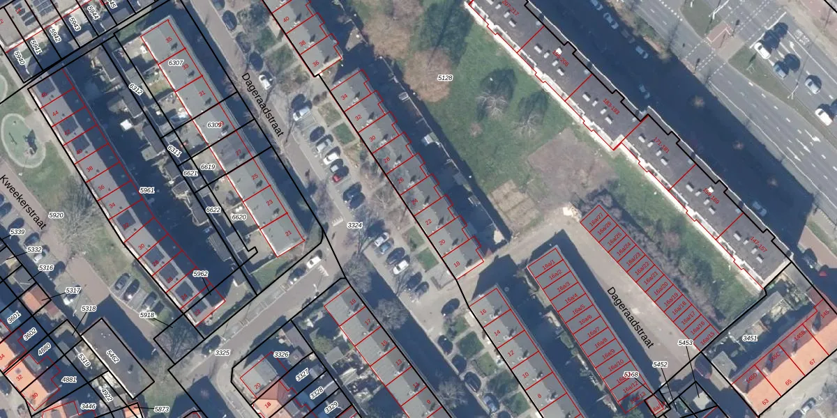 Dageraadstraat 24 is gelegen op kadastraal perceel ZDM01L5128. Deze kadastrale aanduiding is uniek en wordt gebruikt door het Kadaster om eigendomsrechten en andere zakelijke rechten vast te leggen. Het perceel maakt onderdeel uit van de kadastrale gemeente Zaandam.