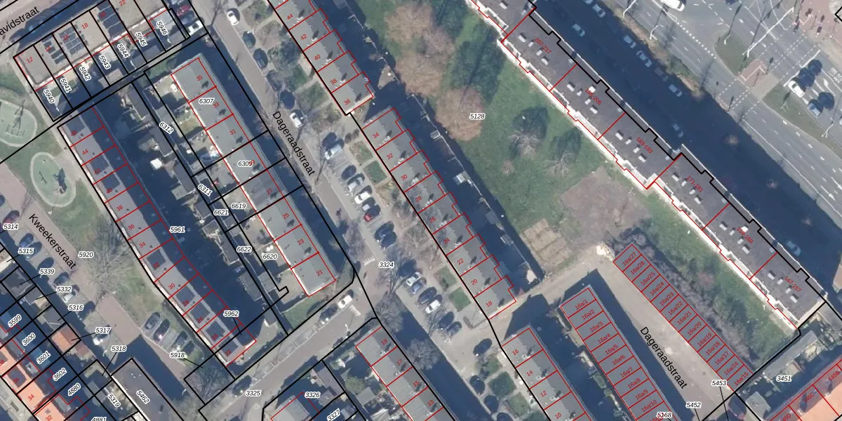 Dageraadstraat 28 is gelegen op kadastraal perceel ZDM01L5128. Deze kadastrale aanduiding is uniek en wordt gebruikt door het Kadaster om eigendomsrechten en andere zakelijke rechten vast te leggen. Het perceel maakt onderdeel uit van de kadastrale gemeente Zaandam.