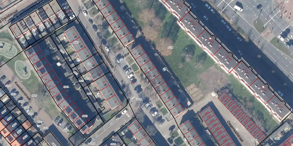 Dageraadstraat 30 is gelegen op kadastraal perceel ZDM01L5128. Deze kadastrale aanduiding is uniek en wordt gebruikt door het Kadaster om eigendomsrechten en andere zakelijke rechten vast te leggen. Het perceel maakt onderdeel uit van de kadastrale gemeente Zaandam.