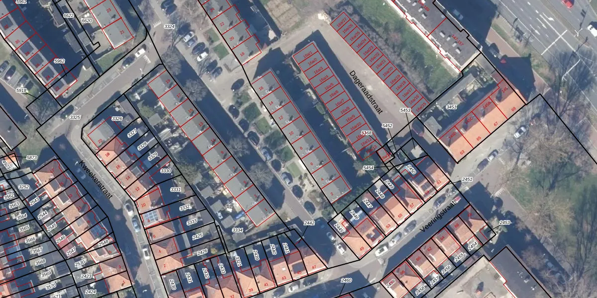 Het perceel waarop Dageraadstraat 8 staat heeft een oppervlakte van 9303 m². Dit is een zeer groot perceel. De perceeloppervlakte wordt geregistreerd door het Kadaster. Gedetailleerde informatie over de maten van dit perceel kunt u vinden in het rapport Kadastrale kaart met maatvoering van Dageraadstraat 8.