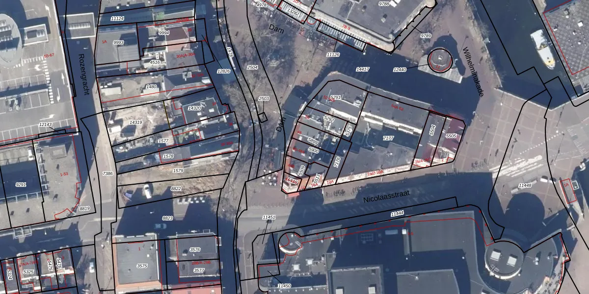 Het perceel waarop Dam 46 staat heeft een oppervlakte van 89 m². Dit is een klein perceel. De perceeloppervlakte wordt geregistreerd door het Kadaster. Gedetailleerde informatie over de maten van dit perceel kunt u vinden in het rapport Kadastrale kaart met maatvoering van Dam 46.