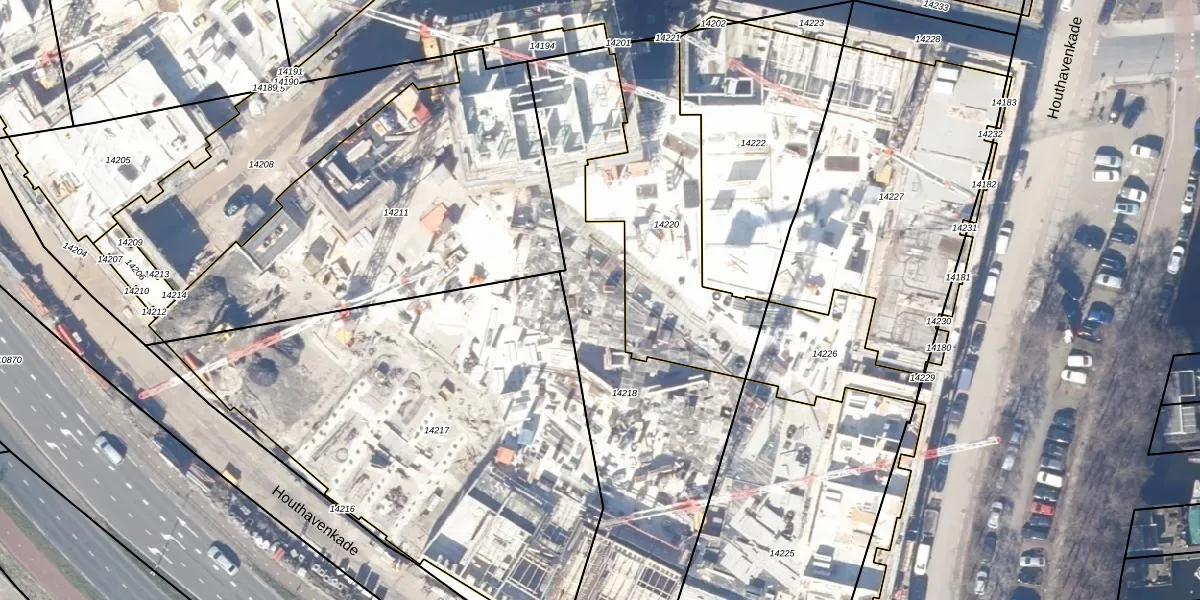 Het adres ligt op het perceel ZDM01-K-14218, dat zich in de kadastrale gemeente Zaandam bevindt. Het perceel is met 1572 m² relatief groot. Het gemiddelde ligt in de kadastrale gemeente Zaandam op 891,55 m². De grootste perceeloppervlakte in de kadastrale gemeente is 46,7 ha. De kleinste oppervlakte bedraagt 0 m². Er zijn 78 adressen aanwezig op het perceel. In de Basisregistratie Kadaster (BRK) werden de grenzen van het perceel geregistreerd op 05-11-2021.