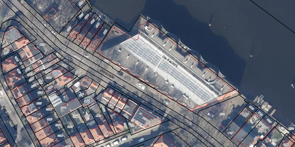 Het perceel waarop De Factorij 30 staat heeft een oppervlakte van 2888 m². Dit is een zeer groot perceel. De perceeloppervlakte wordt geregistreerd door het Kadaster. Gedetailleerde informatie over de maten van dit perceel kunt u vinden in het rapport Kadastrale kaart met maatvoering van De Factorij 30.