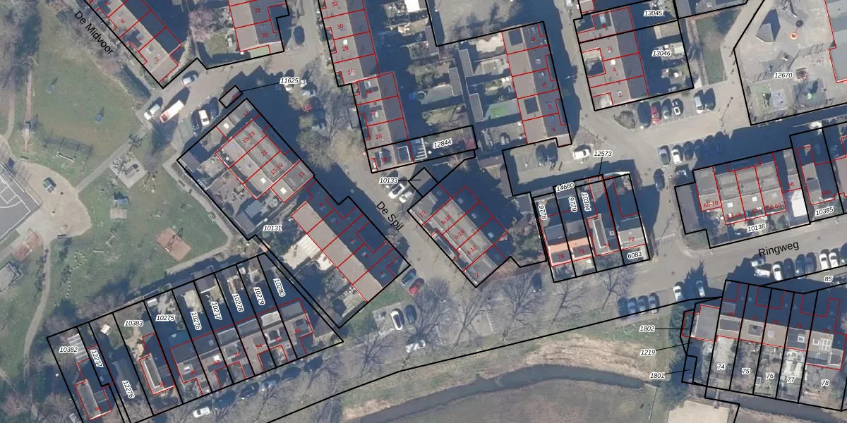 Het perceel waarop De Spil 10 staat heeft een oppervlakte van 4765 m². Dit is een zeer groot perceel. De perceeloppervlakte wordt geregistreerd door het Kadaster. Gedetailleerde informatie over de maten van dit perceel kunt u vinden in het rapport Kadastrale kaart met maatvoering van De Spil 10.