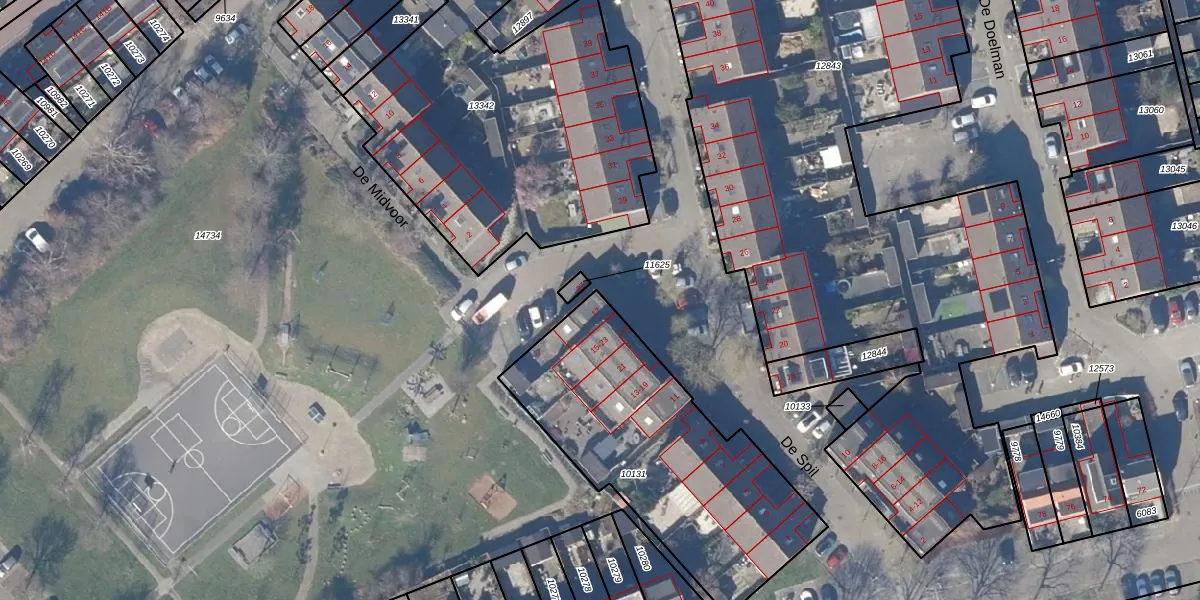 Het perceel waarop De Spil 17 staat heeft een oppervlakte van 1195 m². Dit is een zeer groot perceel. De perceeloppervlakte wordt geregistreerd door het Kadaster. Gedetailleerde informatie over de maten van dit perceel kunt u vinden in het rapport Kadastrale kaart met maatvoering van De Spil 17.