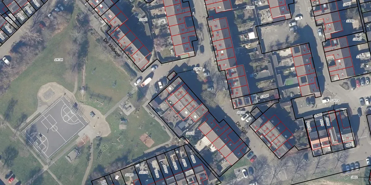 Het perceel waarop De Spil 23 staat heeft een oppervlakte van 1195 m². Dit is een zeer groot perceel. De perceeloppervlakte wordt geregistreerd door het Kadaster. Gedetailleerde informatie over de maten van dit perceel kunt u vinden in het rapport Kadastrale kaart met maatvoering van De Spil 23.