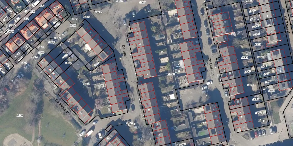 Het perceel waarop De Spil 36 staat heeft een oppervlakte van 4765 m². Dit is een zeer groot perceel. De perceeloppervlakte wordt geregistreerd door het Kadaster. Gedetailleerde informatie over de maten van dit perceel kunt u vinden in het rapport Kadastrale kaart met maatvoering van De Spil 36.