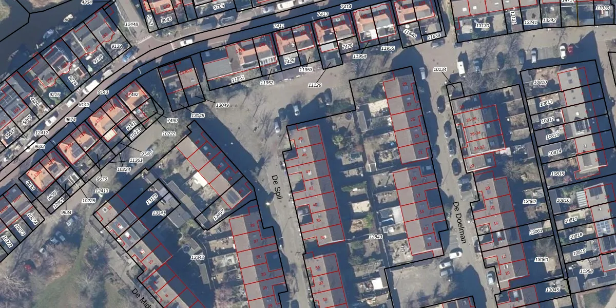 Het perceel waarop De Spil 46 staat heeft een oppervlakte van 4765 m². Dit is een zeer groot perceel. De perceeloppervlakte wordt geregistreerd door het Kadaster. Gedetailleerde informatie over de maten van dit perceel kunt u vinden in het rapport Kadastrale kaart met maatvoering van De Spil 46.