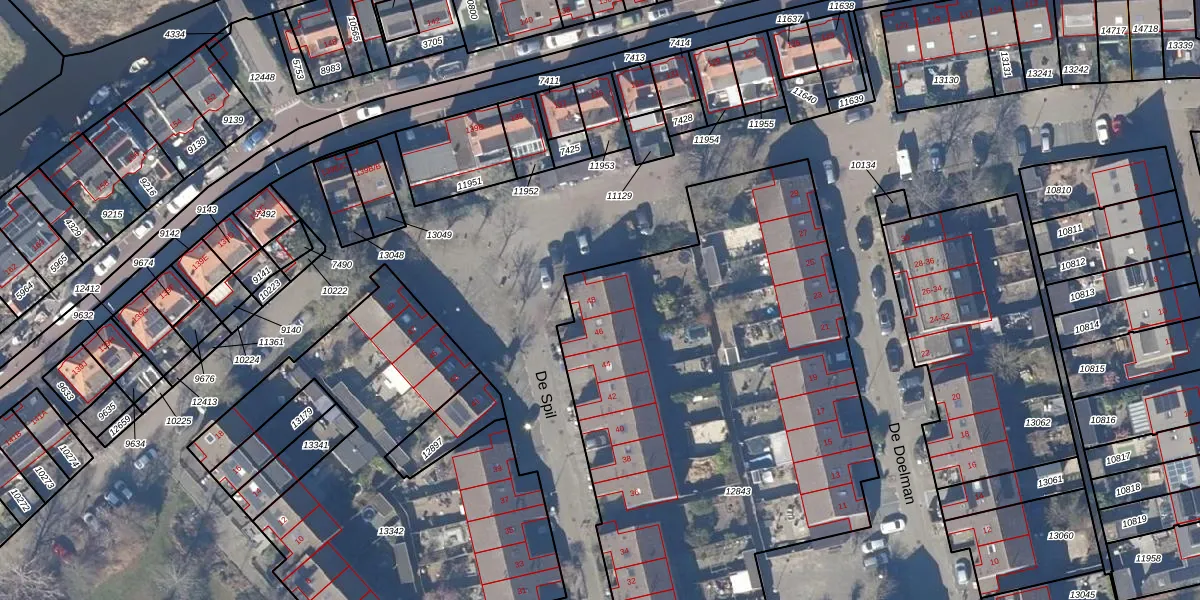 Het perceel waarop De Spil 48 staat heeft een oppervlakte van 4765 m². Dit is een zeer groot perceel. De perceeloppervlakte wordt geregistreerd door het Kadaster. Gedetailleerde informatie over de maten van dit perceel kunt u vinden in het rapport Kadastrale kaart met maatvoering van De Spil 48.