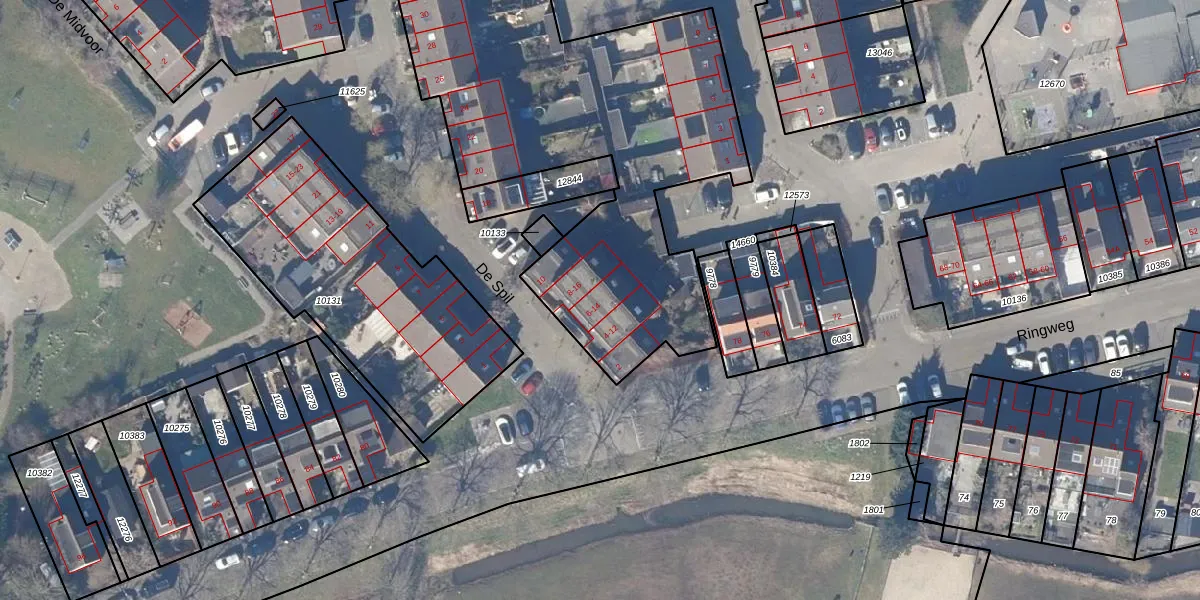 Het perceel waarop De Spil 6 staat heeft een oppervlakte van 4765 m². Dit is een zeer groot perceel. De perceeloppervlakte wordt geregistreerd door het Kadaster. Gedetailleerde informatie over de maten van dit perceel kunt u vinden in het rapport Kadastrale kaart met maatvoering van De Spil 6.