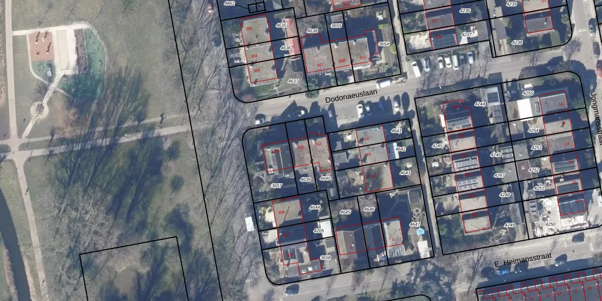 Gebruik de zoekbalk of klik op een perceel voor informatie over de adressen binnen dit perceel.