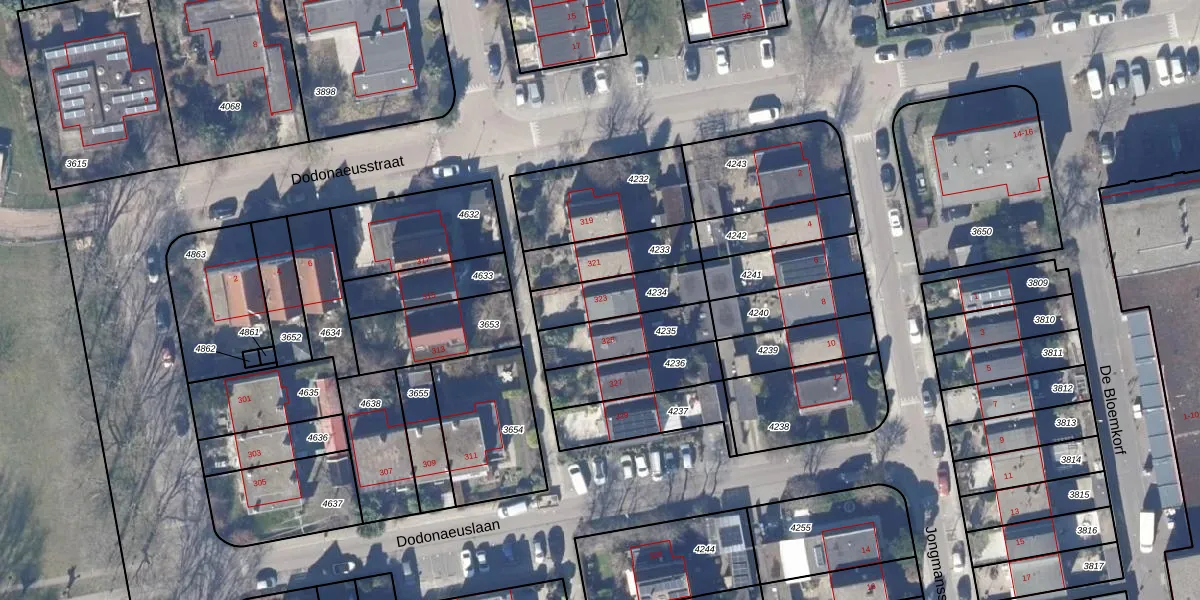 Het perceel waarop Dodonaeuslaan 323 staat heeft een oppervlakte van 195 m². Dit is een middelgroot perceel. De perceeloppervlakte wordt geregistreerd door het Kadaster. Gedetailleerde informatie over de maten van dit perceel kunt u vinden in het rapport Kadastrale kaart met maatvoering van Dodonaeuslaan 323.