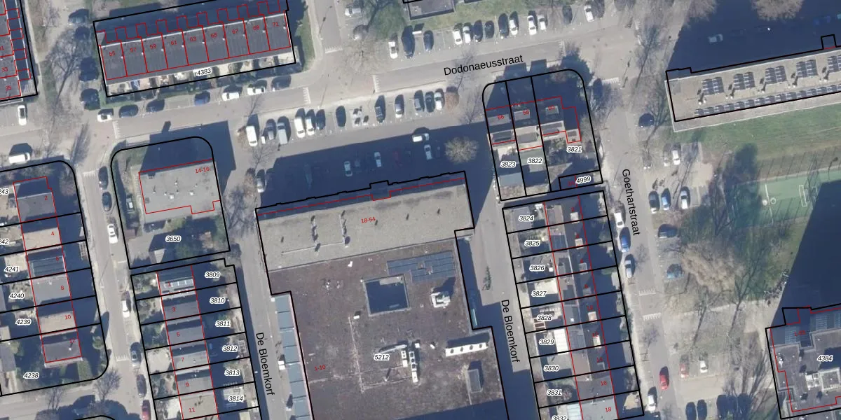 Het perceel waarop Dodonaeusstraat 38 staat heeft een oppervlakte van 3495 m². Dit is een zeer groot perceel. De perceeloppervlakte wordt geregistreerd door het Kadaster. Gedetailleerde informatie over de maten van dit perceel kunt u vinden in het rapport Kadastrale kaart met maatvoering van Dodonaeusstraat 38.