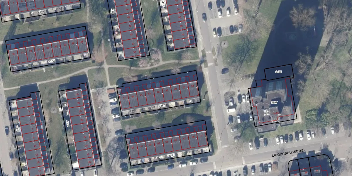 Het perceel waarop Dodonaeusstraat 49 staat heeft een oppervlakte van 823 m². Dit is een groot perceel. De perceeloppervlakte wordt geregistreerd door het Kadaster. Gedetailleerde informatie over de maten van dit perceel kunt u vinden in het rapport Kadastrale kaart met maatvoering van Dodonaeusstraat 49.