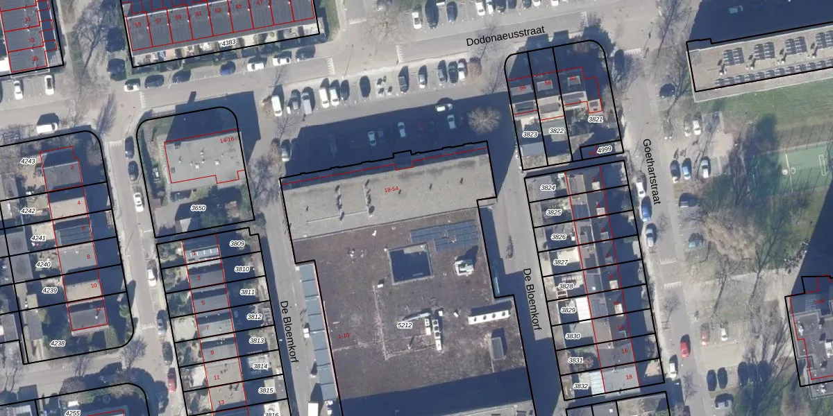 Het perceel waarop Dodonaeusstraat 50 staat heeft een oppervlakte van 3495 m². Dit is een zeer groot perceel. De perceeloppervlakte wordt geregistreerd door het Kadaster. Gedetailleerde informatie over de maten van dit perceel kunt u vinden in het rapport Kadastrale kaart met maatvoering van Dodonaeusstraat 50.