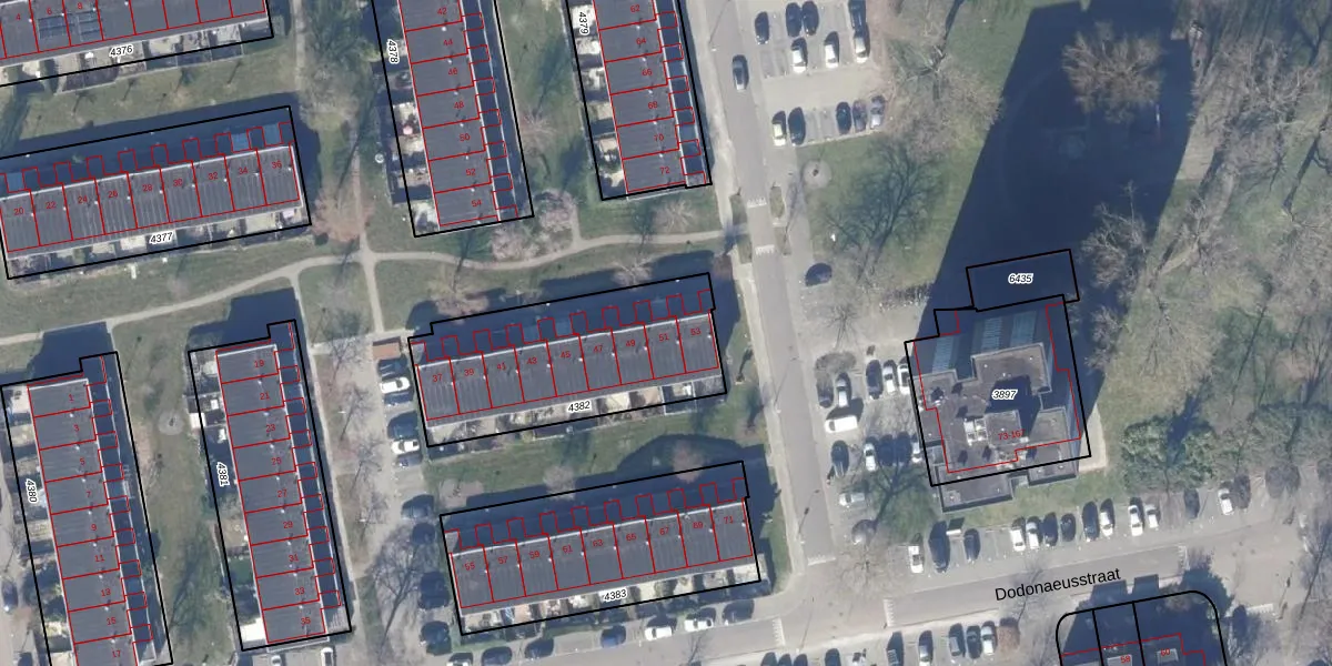 Het perceel waarop Dodonaeusstraat 51 staat heeft een oppervlakte van 823 m². Dit is een groot perceel. De perceeloppervlakte wordt geregistreerd door het Kadaster. Gedetailleerde informatie over de maten van dit perceel kunt u vinden in het rapport Kadastrale kaart met maatvoering van Dodonaeusstraat 51.