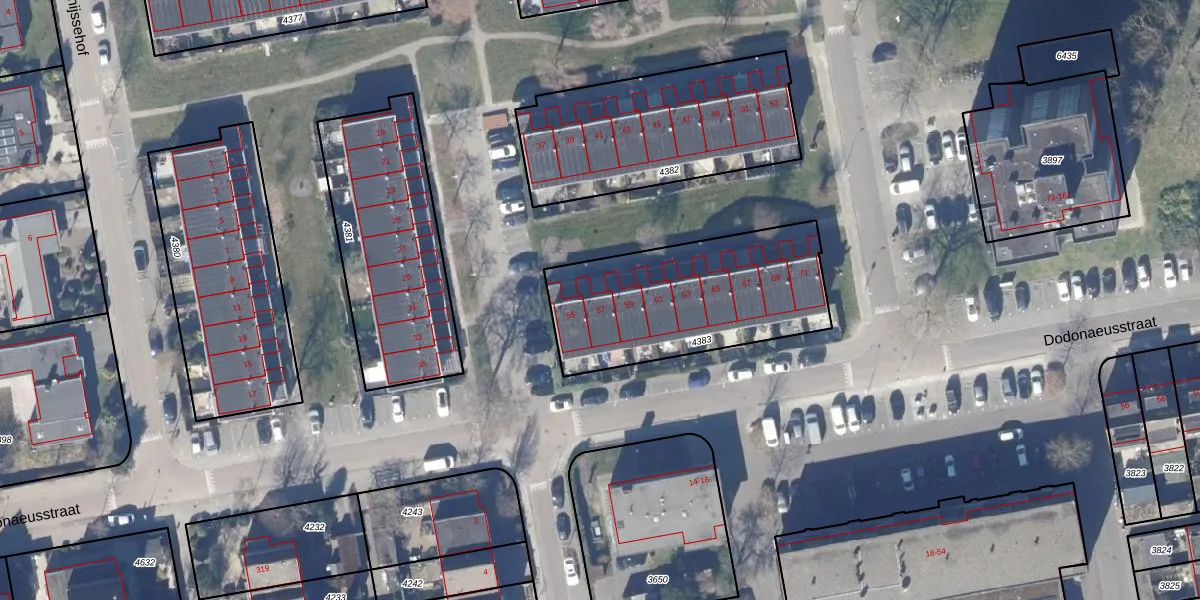 Het perceel waarop Dodonaeusstraat 57 staat heeft een oppervlakte van 829 m². Dit is een groot perceel. De perceeloppervlakte wordt geregistreerd door het Kadaster. Gedetailleerde informatie over de maten van dit perceel kunt u vinden in het rapport Kadastrale kaart met maatvoering van Dodonaeusstraat 57.