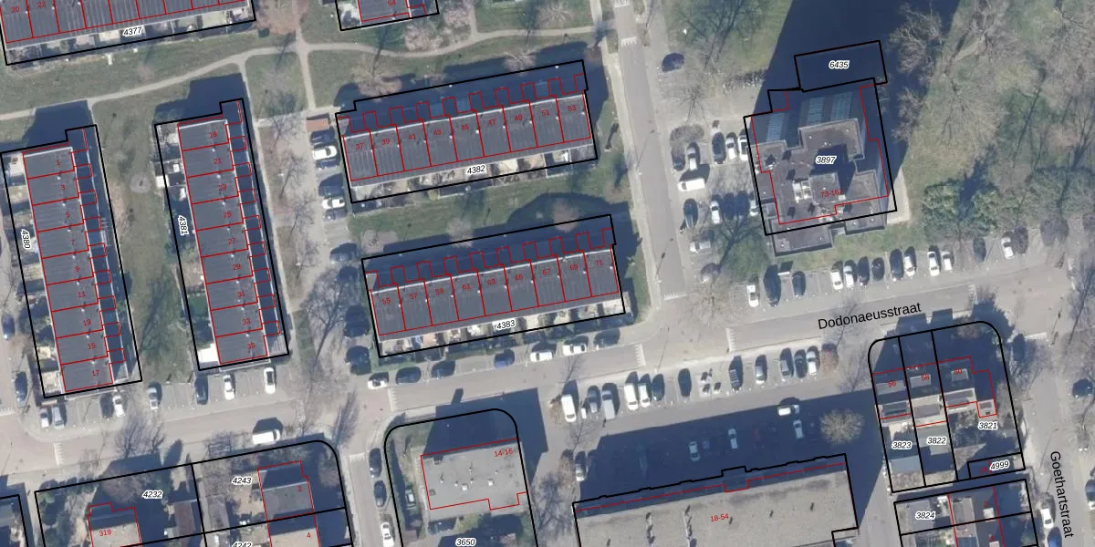 Het perceel waarop Dodonaeusstraat 67 staat heeft een oppervlakte van 829 m². Dit is een groot perceel. De perceeloppervlakte wordt geregistreerd door het Kadaster. Gedetailleerde informatie over de maten van dit perceel kunt u vinden in het rapport Kadastrale kaart met maatvoering van Dodonaeusstraat 67.