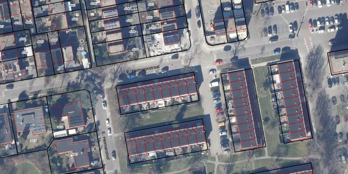 Het perceel waarop E. Heimansstraat 14 staat heeft een oppervlakte van 754 m². Dit is een groot perceel. De perceeloppervlakte wordt geregistreerd door het Kadaster. Gedetailleerde informatie over de maten van dit perceel kunt u vinden in het rapport Kadastrale kaart met maatvoering van E. Heimansstraat 14.