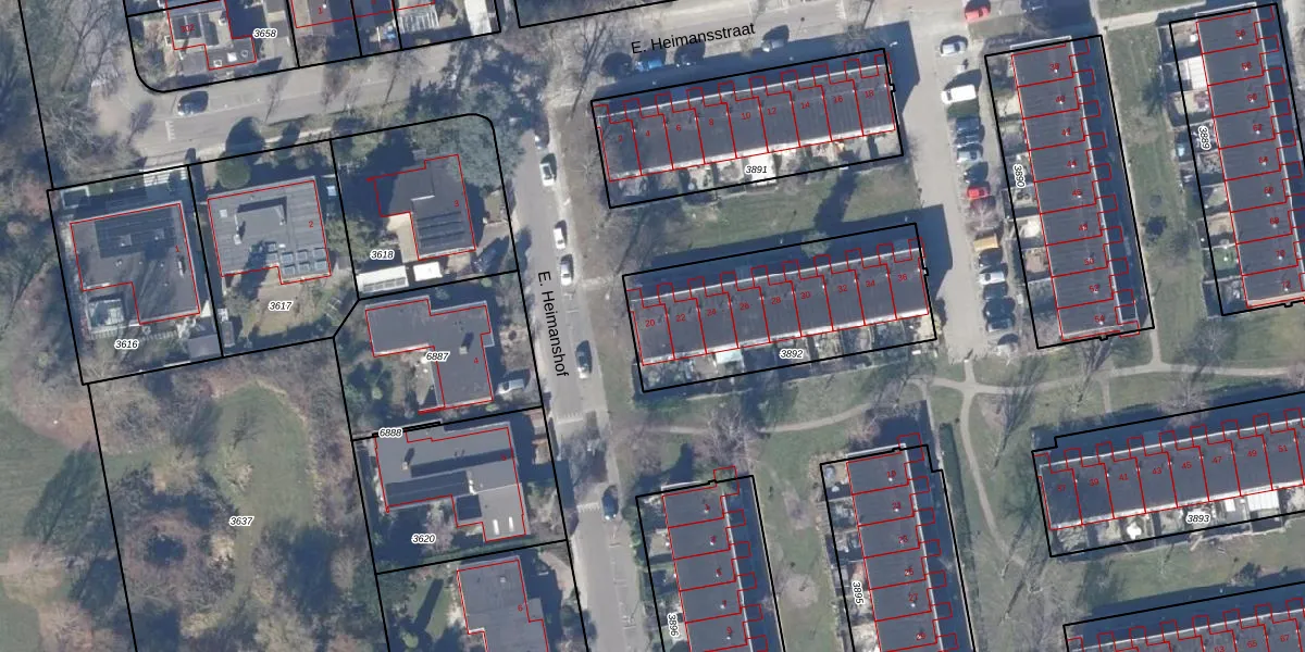 Het perceel waarop E. Heimansstraat 20 staat heeft een oppervlakte van 827 m². Dit is een groot perceel. De perceeloppervlakte wordt geregistreerd door het Kadaster. Gedetailleerde informatie over de maten van dit perceel kunt u vinden in het rapport Kadastrale kaart met maatvoering van E. Heimansstraat 20.