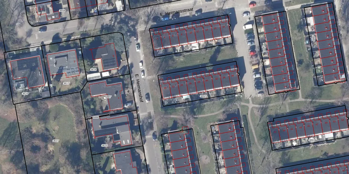 Het perceel waarop E. Heimansstraat 22 staat heeft een oppervlakte van 827 m². Dit is een groot perceel. De perceeloppervlakte wordt geregistreerd door het Kadaster. Gedetailleerde informatie over de maten van dit perceel kunt u vinden in het rapport Kadastrale kaart met maatvoering van E. Heimansstraat 22.