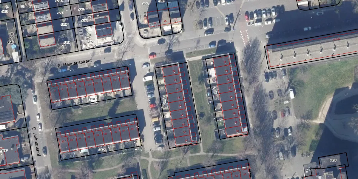 Het perceel waarop E. Heimansstraat 42 staat heeft een oppervlakte van 826 m². Dit is een groot perceel. De perceeloppervlakte wordt geregistreerd door het Kadaster. Gedetailleerde informatie over de maten van dit perceel kunt u vinden in het rapport Kadastrale kaart met maatvoering van E. Heimansstraat 42.