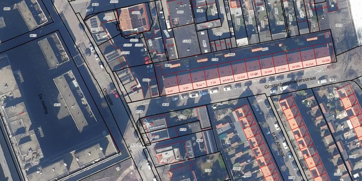 Het perceel waarop Grootscheepmakersstraat 3 staat heeft een oppervlakte van 1825 m². Dit is een zeer groot perceel. De perceeloppervlakte wordt geregistreerd door het Kadaster. Gedetailleerde informatie over de maten van dit perceel kunt u vinden in het rapport Kadastrale kaart met maatvoering van Grootscheepmakersstraat 3.