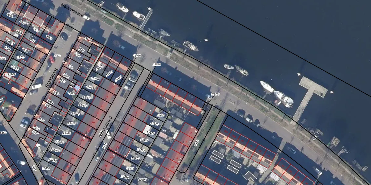 Het perceel waarop Havenstraat 37 staat heeft een oppervlakte van 2284 m². Dit is een zeer groot perceel. De perceeloppervlakte wordt geregistreerd door het Kadaster. Gedetailleerde informatie over de maten van dit perceel kunt u vinden in het rapport Kadastrale kaart met maatvoering van Havenstraat 37.