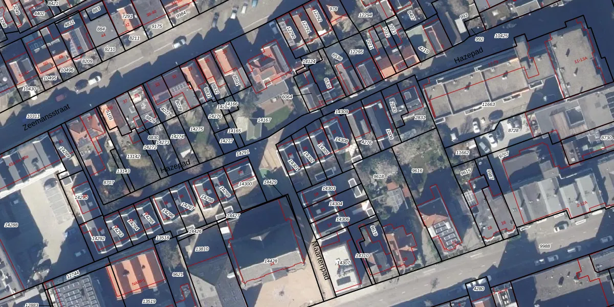 Gebruik de zoekbalk of klik op een perceel voor informatie over de adressen binnen dit perceel.