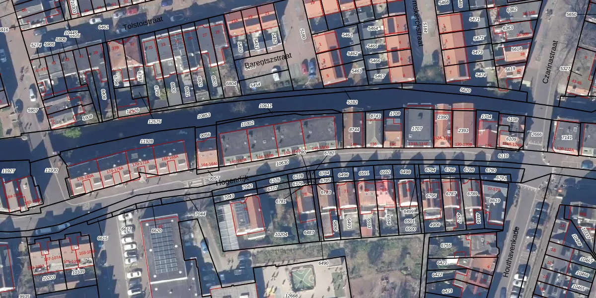 Het perceel waarop Hogendijk 152 staat heeft een oppervlakte van 570 m². Dit is een groot perceel. De perceeloppervlakte wordt geregistreerd door het Kadaster. Gedetailleerde informatie over de maten van dit perceel kunt u vinden in het rapport Kadastrale kaart met maatvoering van Hogendijk 152.