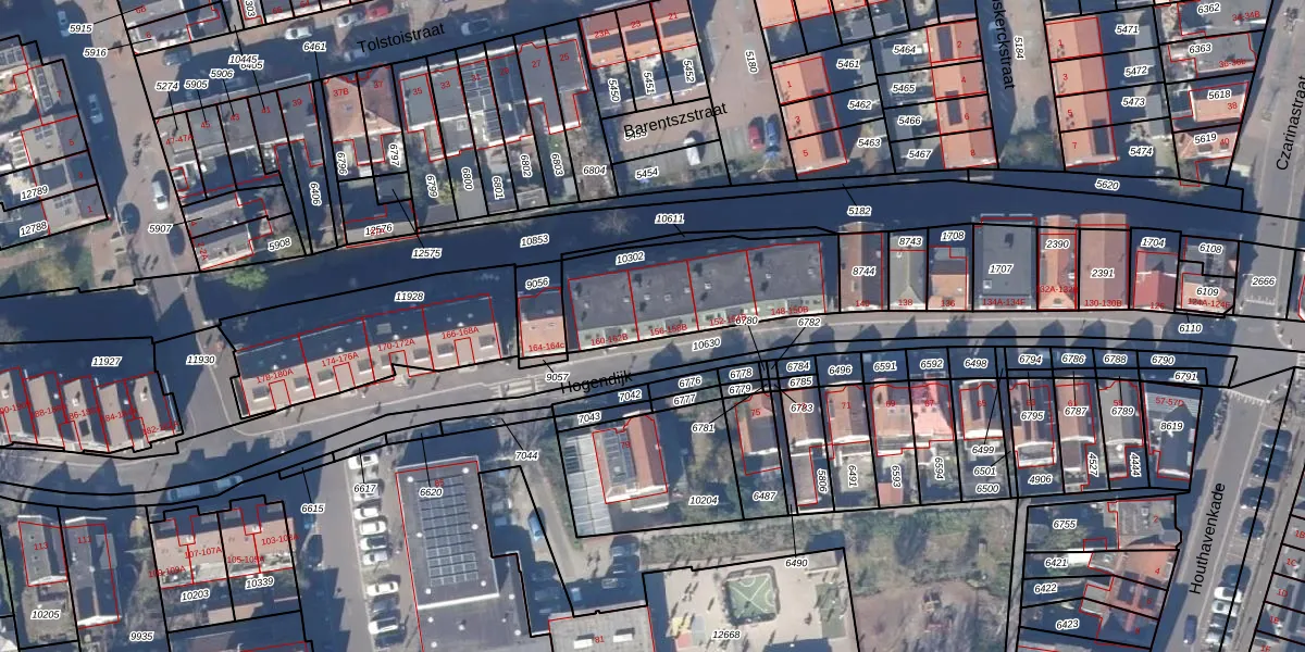 Het perceel waarop Hogendijk 158 staat heeft een oppervlakte van 570 m². Dit is een groot perceel. De perceeloppervlakte wordt geregistreerd door het Kadaster. Gedetailleerde informatie over de maten van dit perceel kunt u vinden in het rapport Kadastrale kaart met maatvoering van Hogendijk 158.