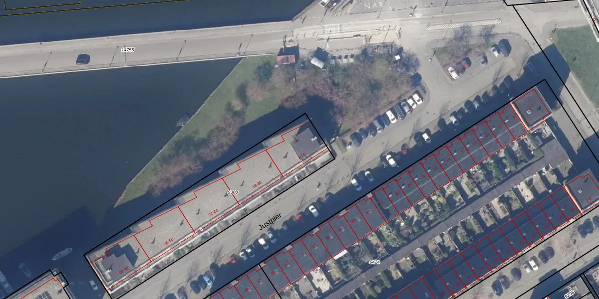 Het perceel waarop Justpier 14 staat heeft een oppervlakte van 1605 m². Dit is een zeer groot perceel. De perceeloppervlakte wordt geregistreerd door het Kadaster. Gedetailleerde informatie over de maten van dit perceel kunt u vinden in het rapport Kadastrale kaart met maatvoering van Justpier 14.