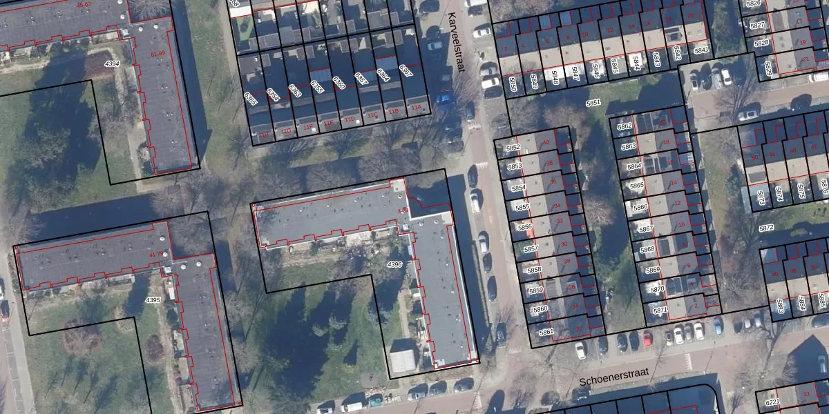 Het perceel waarop Karveelstraat 21 staat heeft een oppervlakte van 1616 m². Dit is een zeer groot perceel. De perceeloppervlakte wordt geregistreerd door het Kadaster. Gedetailleerde informatie over de maten van dit perceel kunt u vinden in het rapport Kadastrale kaart met maatvoering van Karveelstraat 21.