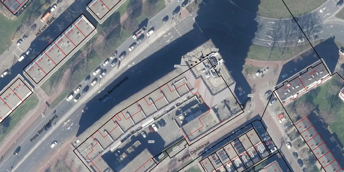 Het perceel waarop Koning Davidstraat 151 staat heeft een oppervlakte van 3420 m². Dit is een zeer groot perceel. De perceeloppervlakte wordt geregistreerd door het Kadaster. Gedetailleerde informatie over de maten van dit perceel kunt u vinden in het rapport Kadastrale kaart met maatvoering van Koning Davidstraat 151.