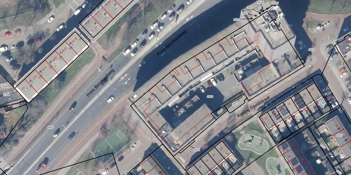 Het perceel waarop Koning Davidstraat 187 staat heeft een oppervlakte van 3420 m². Dit is een zeer groot perceel. De perceeloppervlakte wordt geregistreerd door het Kadaster. Gedetailleerde informatie over de maten van dit perceel kunt u vinden in het rapport Kadastrale kaart met maatvoering van Koning Davidstraat 187.