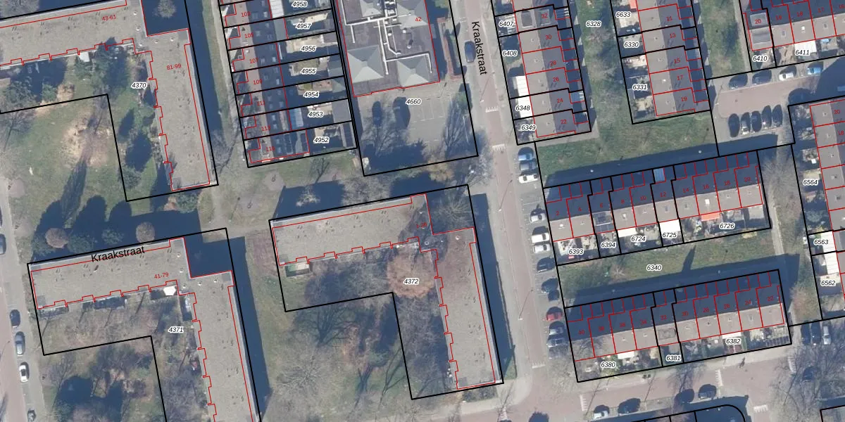 Kraakstraat 33 is gelegen op kadastraal perceel ZDM01D4372. Deze kadastrale aanduiding is uniek en wordt gebruikt door het Kadaster om eigendomsrechten en andere zakelijke rechten vast te leggen. Het perceel maakt onderdeel uit van de kadastrale gemeente Zaandam.