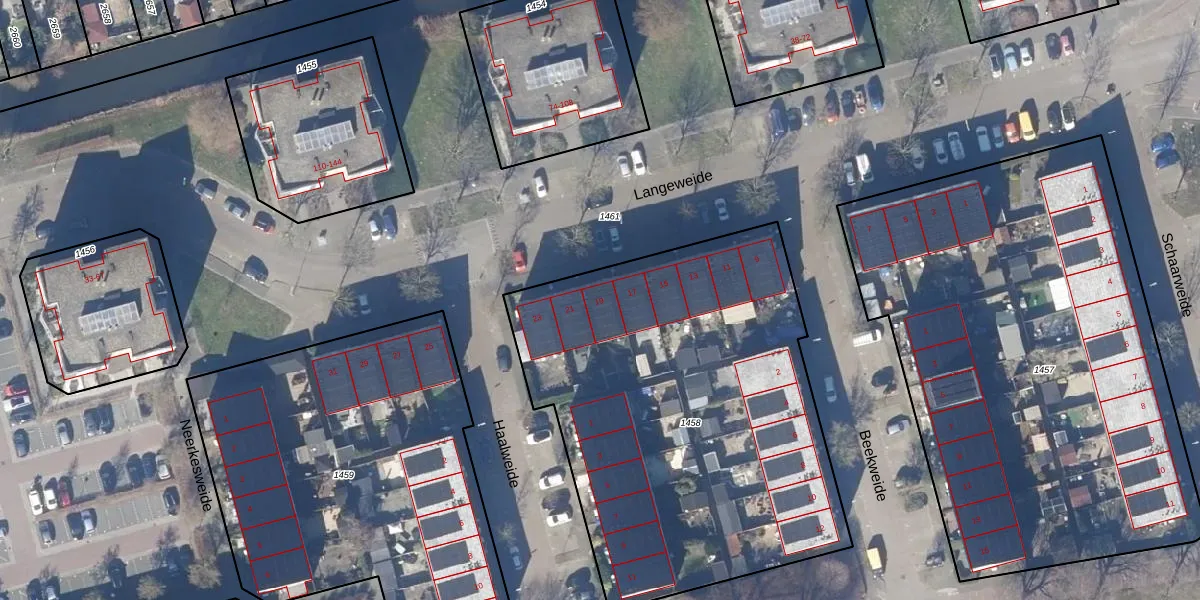 Het perceel waarop Langeweide 19 staat heeft een oppervlakte van 2440 m². Dit is een zeer groot perceel. De perceeloppervlakte wordt geregistreerd door het Kadaster. Gedetailleerde informatie over de maten van dit perceel kunt u vinden in het rapport Kadastrale kaart met maatvoering van Langeweide 19.