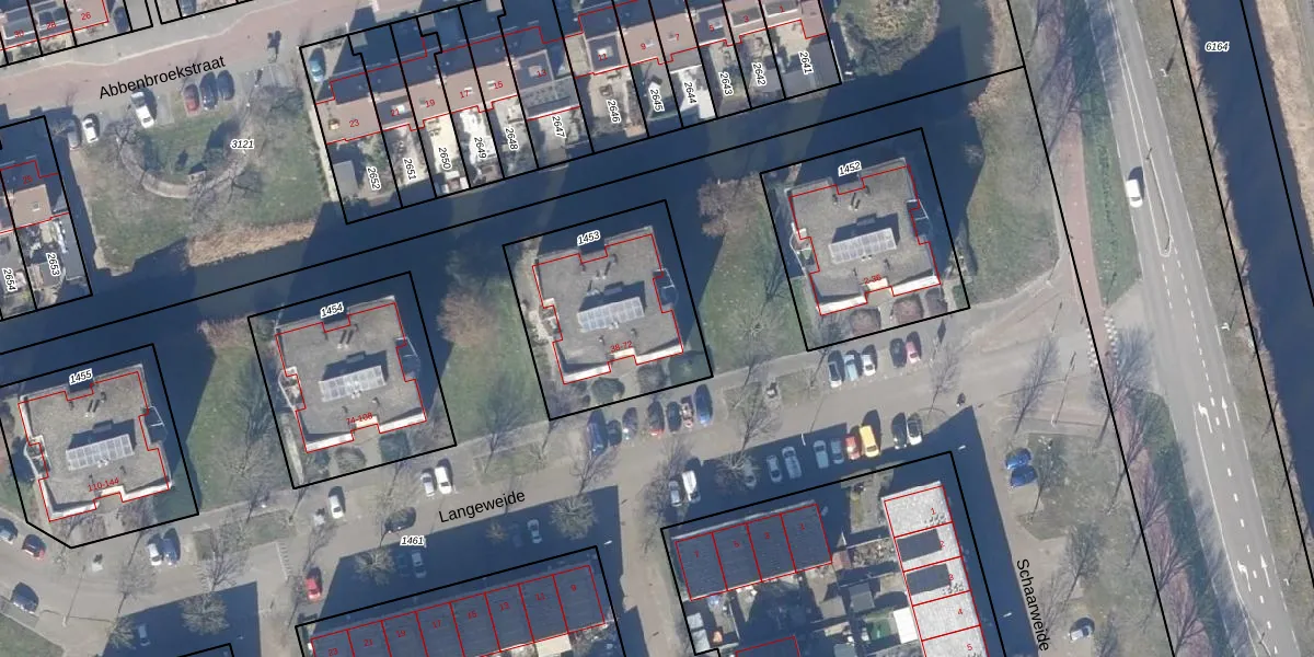 Het perceel waarop Langeweide 54 staat heeft een oppervlakte van 705 m². Dit is een groot perceel. De perceeloppervlakte wordt geregistreerd door het Kadaster. Gedetailleerde informatie over de maten van dit perceel kunt u vinden in het rapport Kadastrale kaart met maatvoering van Langeweide 54.